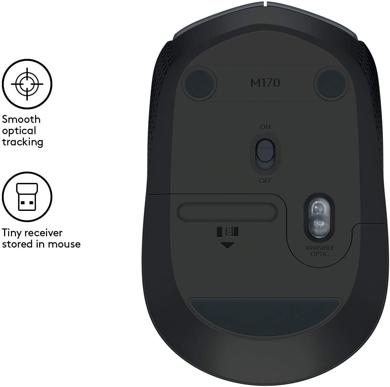 Logitech M170 Mouse Wireless, 2.4 GHz con Ricevitore Nano USB, Rilevamento Ottico, Mouse Ambidestro per PC/Mac/Laptop, Nero