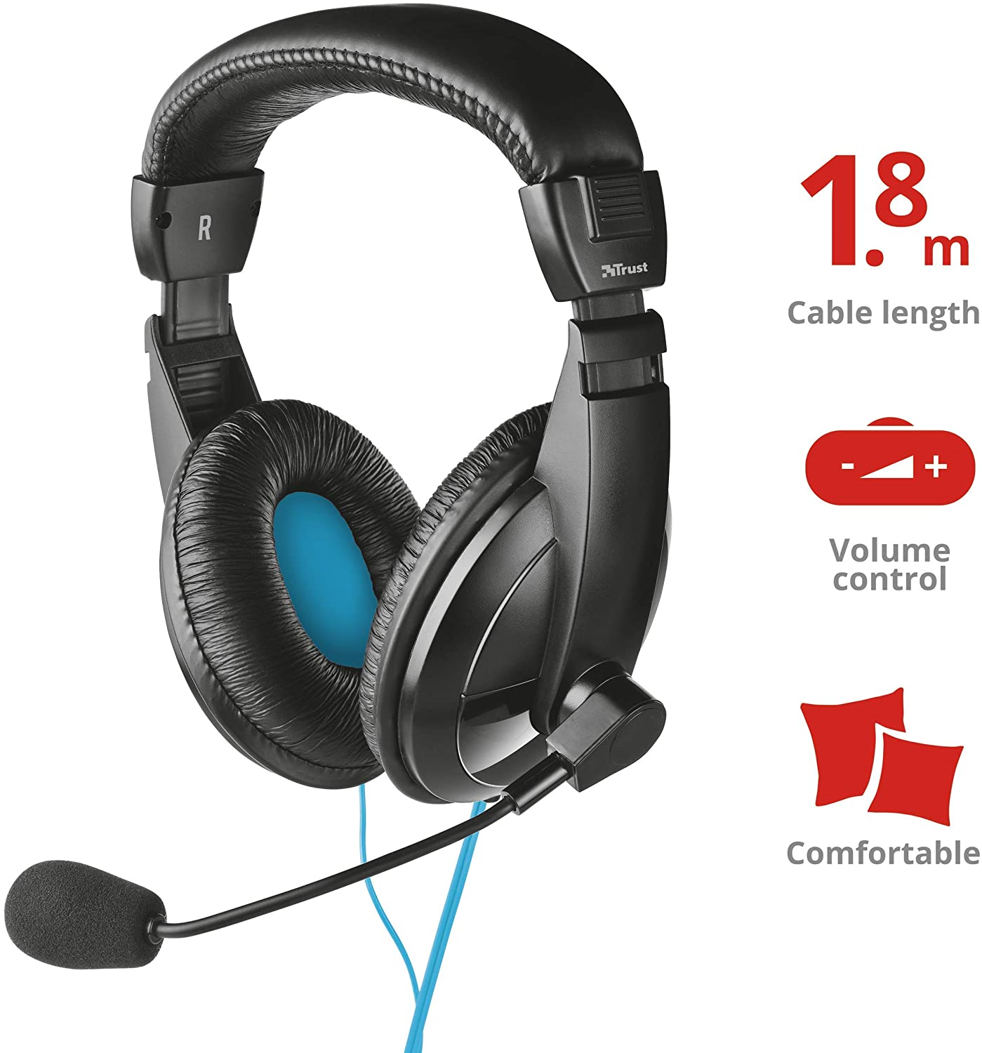 Trust Quasar Cuffie Over-Ear, Dotate di Archetto Regolabile Imbottito e Soffici Padiglioni Auricolari, Nero